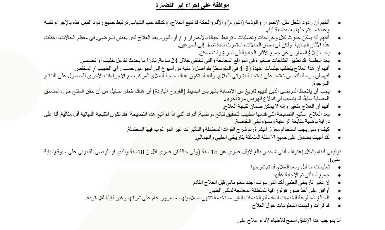 I understand that reactions such as redness, oedema (swelling), pain and itching may follow treatment,